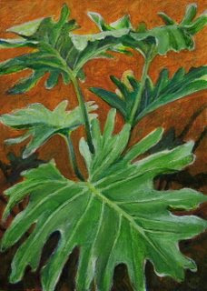 This is an offspring of the plant that was painted yesterday, one of many, many progeny. There is no plant with quite so much life in it as the Monstera deliciosa.- Nancy Boudreau